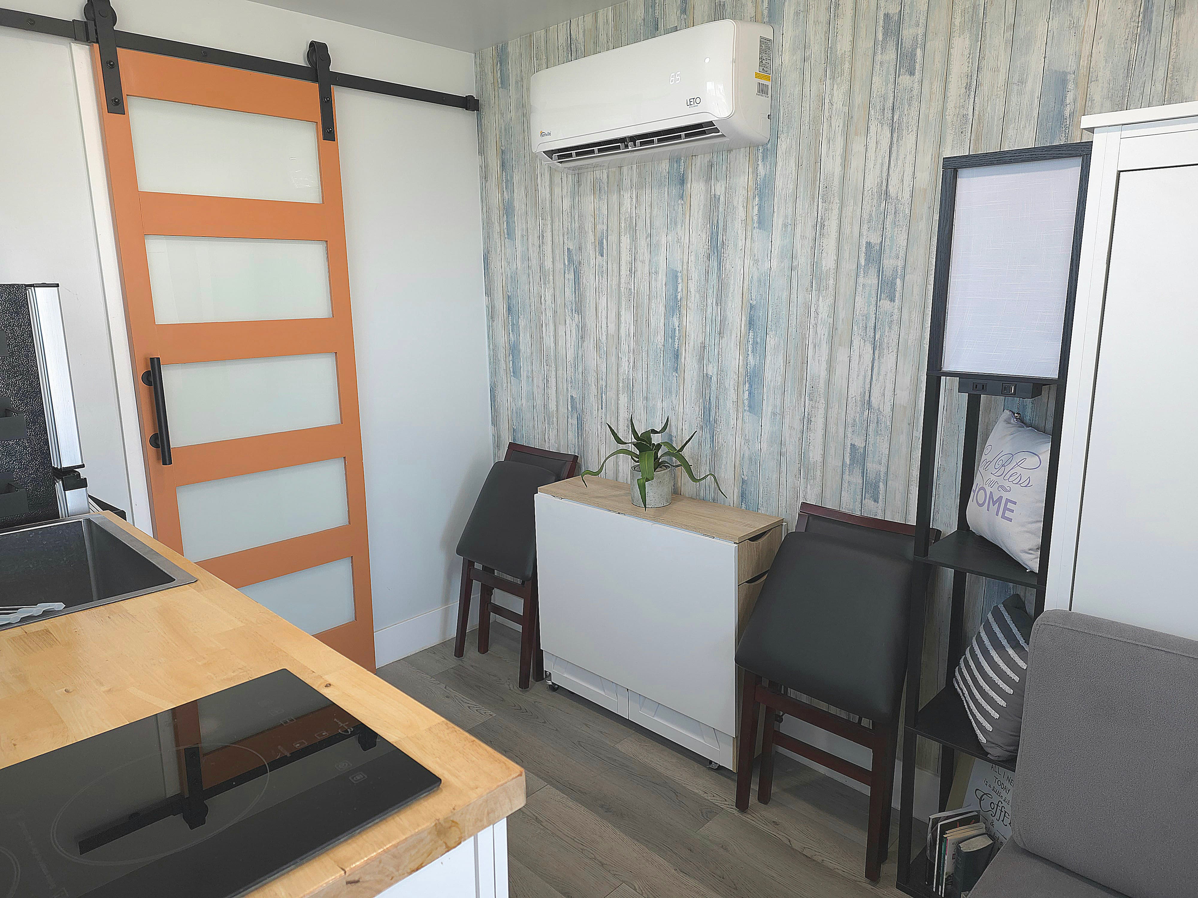 This is a 20' container tiny home on-wheels. It has some incredible features such as, 8'x8' back deck, custom exterior paint job, custom interior finishes and sofa murphy bed. Ideal to be used as an Airbnb rental, guest suite or minimal full-time living space.